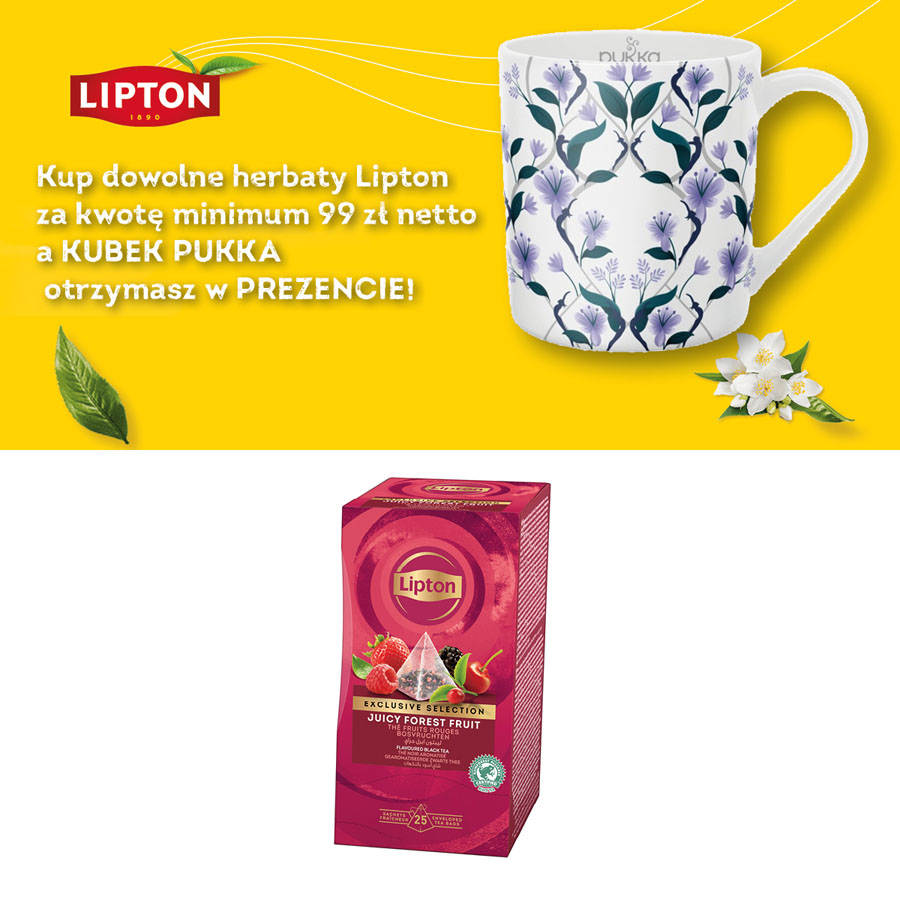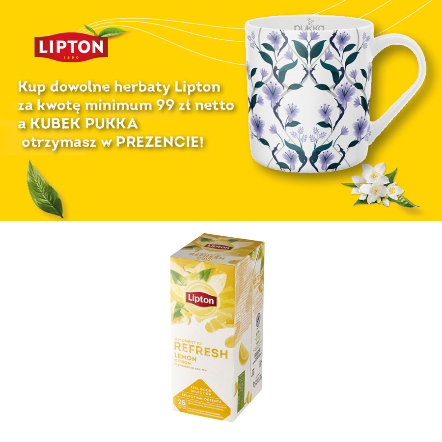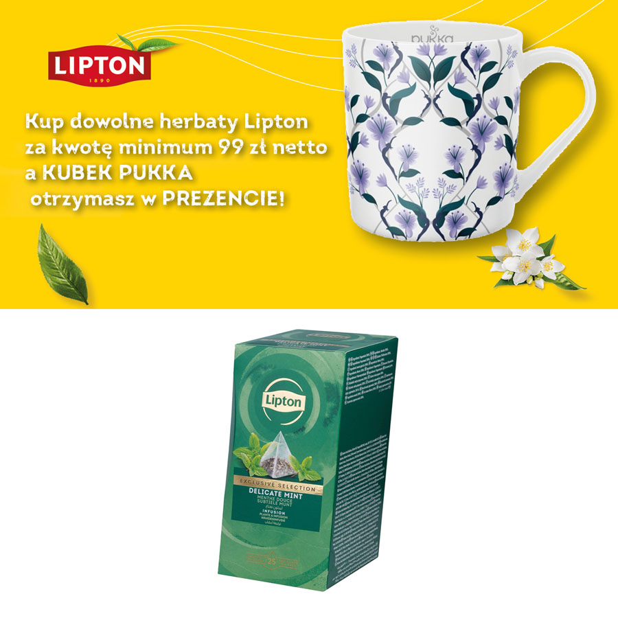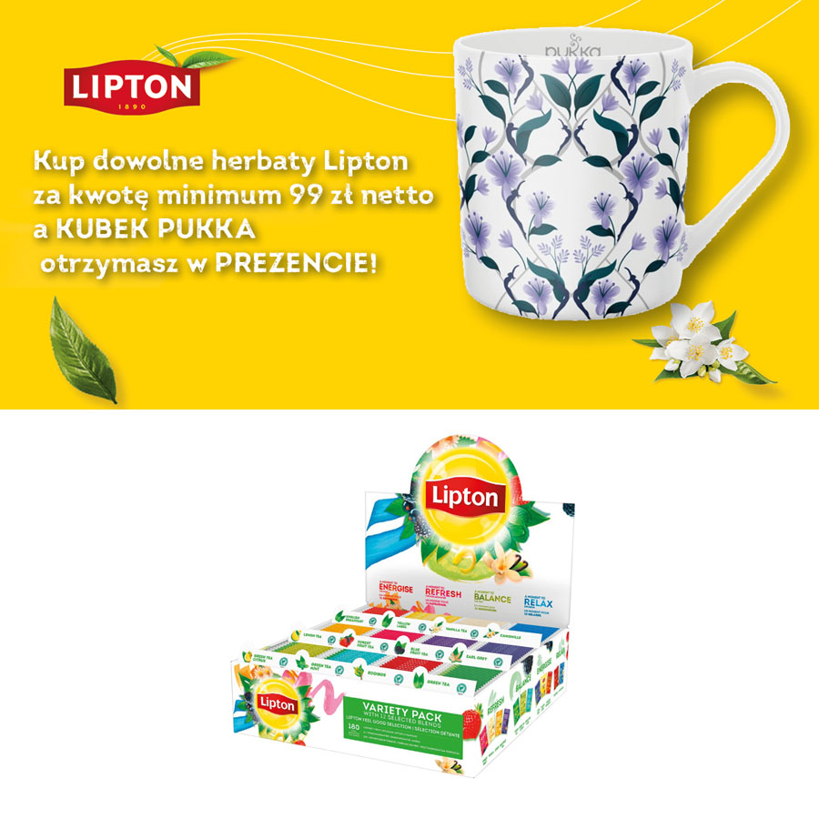 Kup dowolne herbaty Lipton za kwotę minimum 99 zł netto a kubek PUKKA otrzymasz w PREZENCIE!