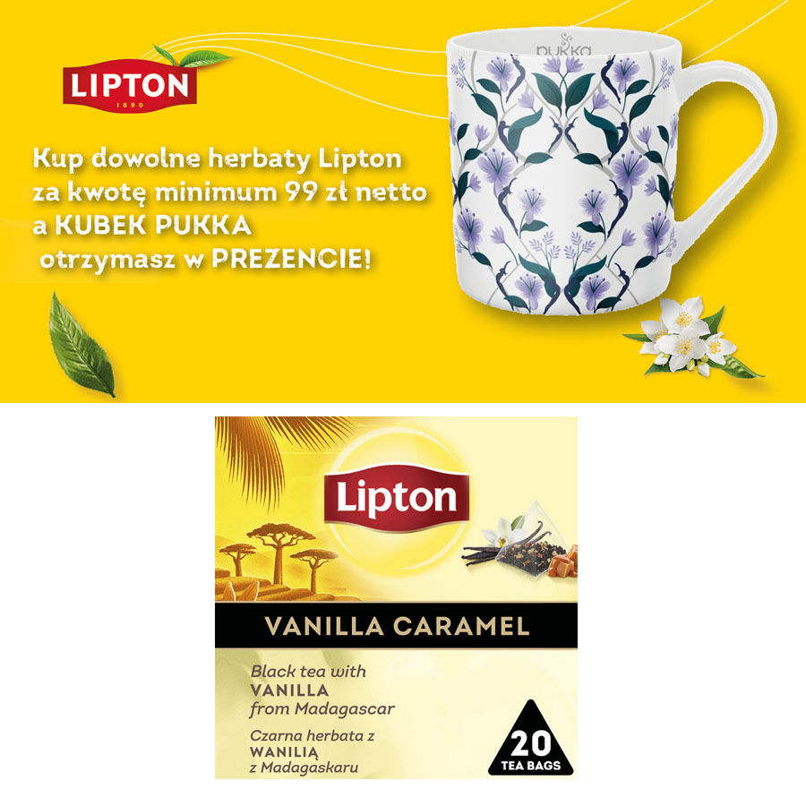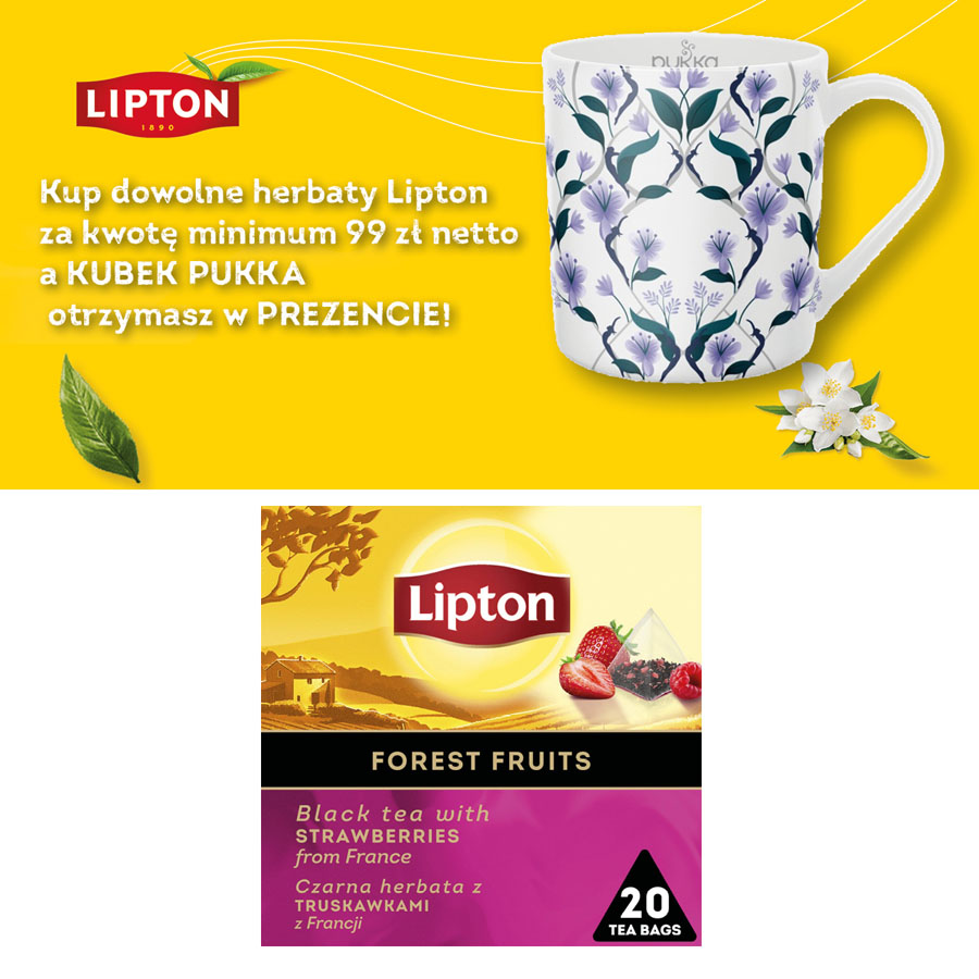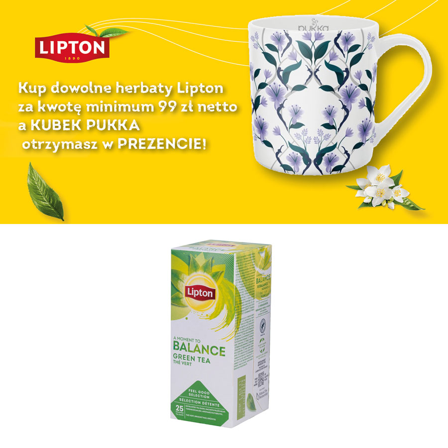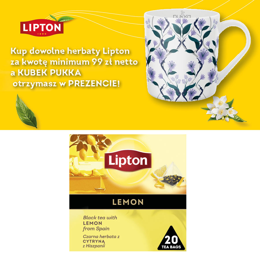 Kup dowolne herbaty Lipton za kwotę minimum 99 zł netto a kubek PUKKA otrzymasz w PREZENCIE!