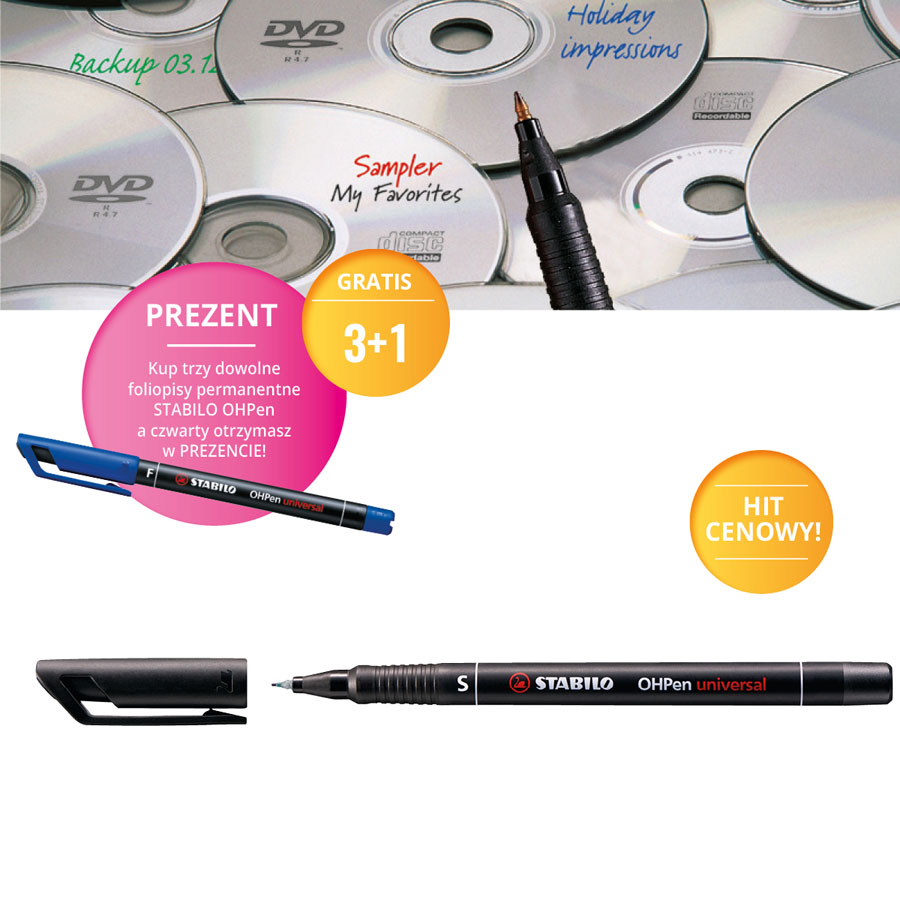 kup trzy dowolne foliopisy permanentne STABILO OHPen a czwarty otrzymasz w PREZENCIE!