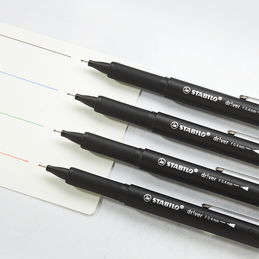 Najwyższej klasy cienkopis STABILO dr!ver zapewnia wyjątkową precyzję i komfort użytkowania. Doskonale sprawdzi się do pisania, rysowania, podkreślania oraz pracy z linijką. Wyposażony w mocną, metalową końcówkę, gwarantuje trwałość i niezawodność aż do całkowitego wyczerpania tuszu.